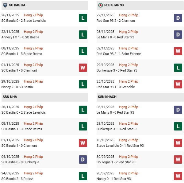 - Bastia thắng 3, hòa 1 trong 4 trận gặp Red Star gần đây.