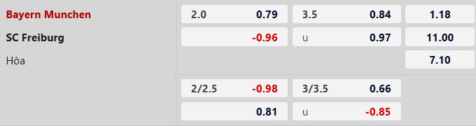 Thông tin tỷ lệ kèo bóng đá Bayern Munich vs Freiburg: