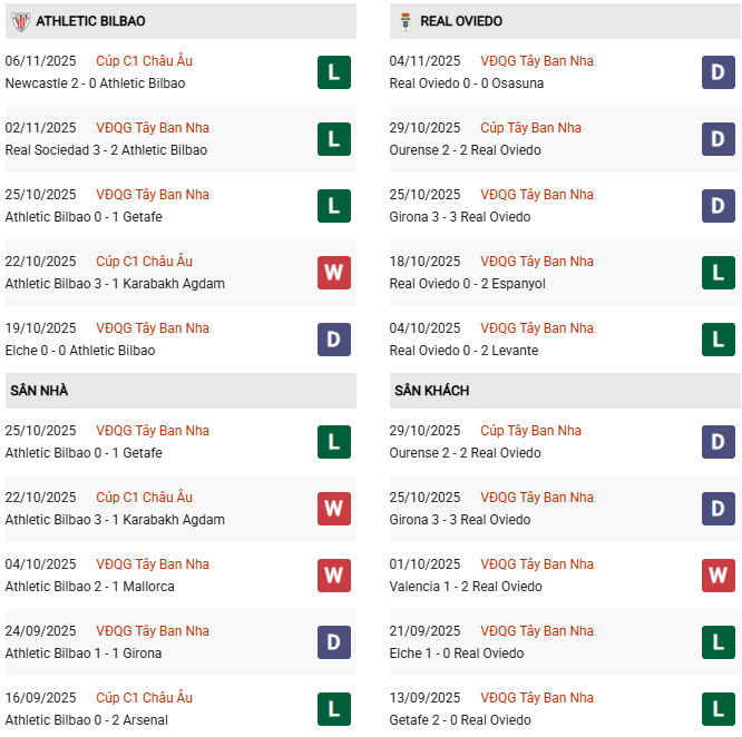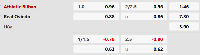 - Bilbao thắng 2, hòa 1 trong 3 trận gặp Oviedo gần đây.