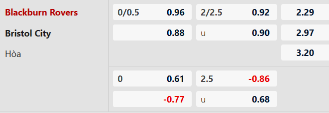 Thông tin tỷ lệ kèo Blackburn vs Bristol City:
