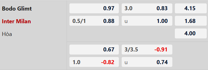 Soi kèo châu Á Bodo Glimt vs Inter Milan: