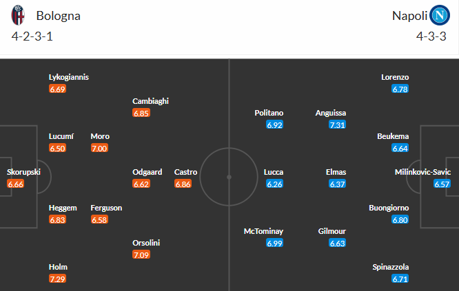 - Bologna thắng 1, hòa 3, thua 6 trong 10 trận gặp Napoli gần đây.