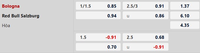 Salzburg thua theo châu Á: Trong 4 trận gần đây ở Europa League, Salzburg thua theo châu Á tới 3 lần. Đá với Bologna thắng theo châu Á 7/9 trận vừa qua, các vị khách không phải là sự lựa chọn đáng tin cậy.