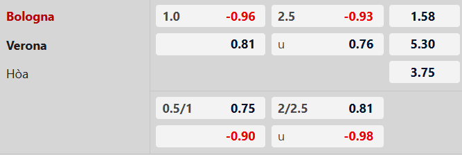 Thông tin tỷ lệ kèo Bologna vs Verona: