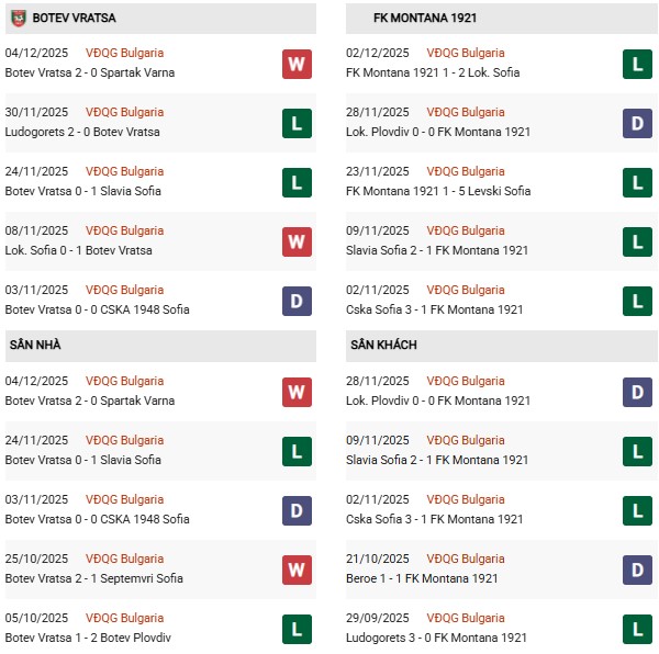 Trên sân nhà, Botev Vratsa thi đấu ở mức trung bình với 3 chiến thắng, 4 trận hòa và 3 thất bại trong 10 lần đón khách gần nhất. Dù chưa thực sự bùng nổ, nhưng họ luôn biết cách tận dụng sai lầm của các đối thủ yếu hơn – điều Montana đang mắc phải rất nhiều.