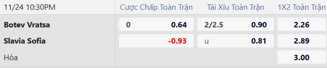 Kèo đồng banh cho thấy giới chuyên môn đánh giá hai đội ngang cơ ở thời điểm hiện tại. Botev Vratsa có lợi thế sân nhà, nhưng Slavia Sofia lại sở hữu phong độ ổn định hơn trong thời gian gần đây. Sự giằng co là điều dễ thấy, và kết quả hòa là kịch bản có xác suất cao.