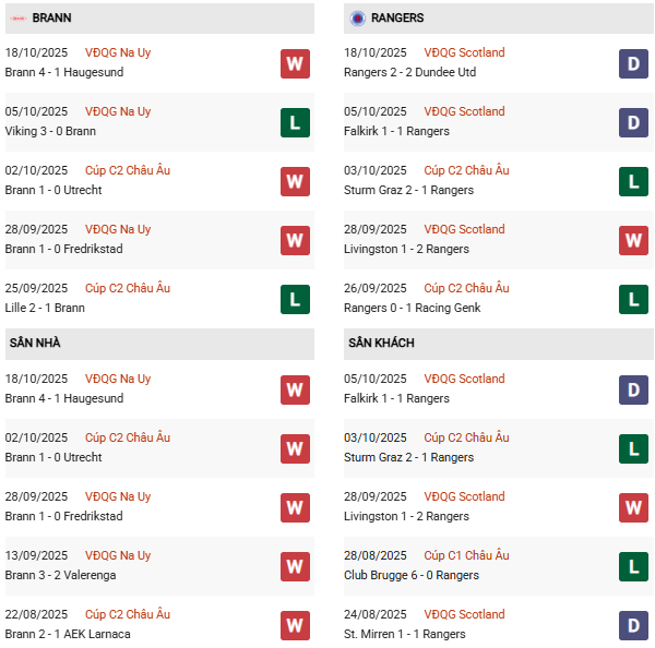 Thống kê phong độ Brann vs Rangers: