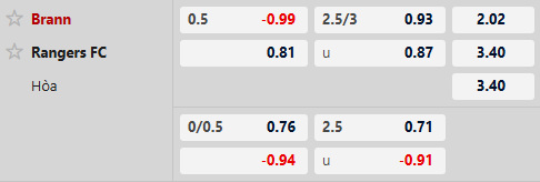 Thông tin tỷ lệ kèo Brann vs Rangers: