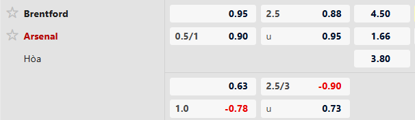 Thông tin tỷ lệ kèo Brentford vs Arsenal: