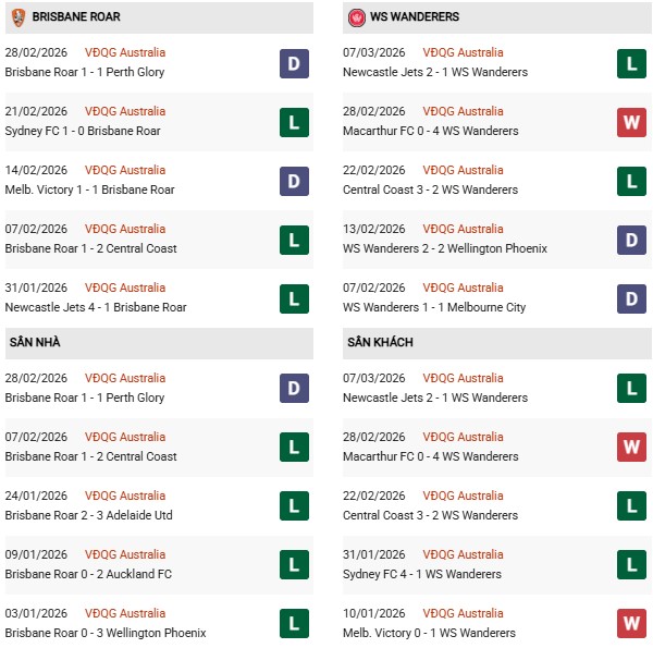 Cuối tuần này, Brisbane Roar được chơi trên sân nhà Suncorp và đón tiếp một Western Sydney Wanderers đang xếp cuối bảng nên nhìn "cảm quan" ban đầu, đây là cơ hội tốt để thầy trò HLV Michael Valkanis tìm lại cảm giác chiến thắng.