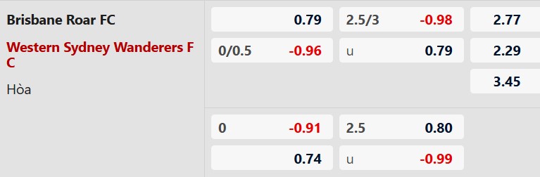 Thông tin tỷ lệ bóng đá Brisbane Roar vs Western Sydney: