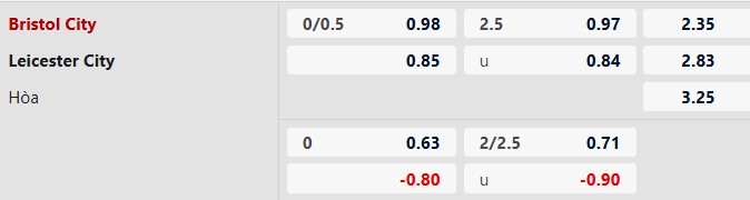 Thông tin tỷ lệ kèo Bristol City vs Leicester: