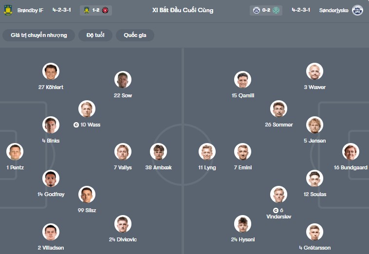 Đội hình dự kiến Brondby vs Sonderjyske: