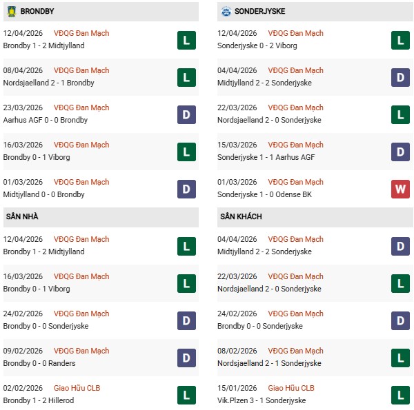 - Brondby thắng 5, hòa 2, thua 3 trong 10 trận gặp Sonderjyske gần đây.