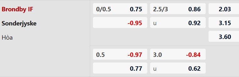 Thông tin tỷ lệ kèo Brondby vs Sonderjyske: