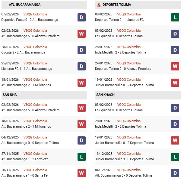 Trong khi đó, Tolima lại đang cho thấy bộ mặt khá trái ngược. Họ khởi đầu mùa giải 2026 bằng 2 chiến thắng liên tiếp trước Atletico Junior và Alianza nhưng 3 vòng sau đó, các học trò của HLV Lucas Gonzalez không có thêm thắng lợi nào.