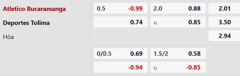 Thông tin tỷ lệ kèo Bucaramanga vs Tolima: