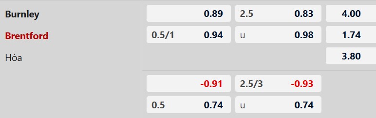Thông tin kèo bóng đá Burnley vs Brentford: