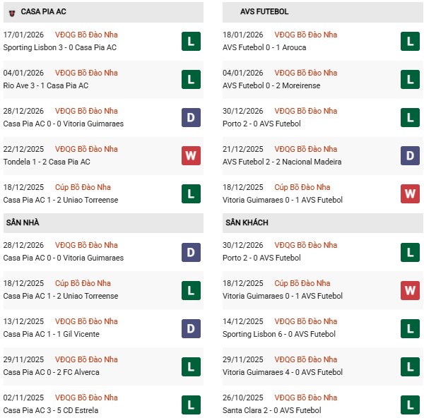 - Casa Pia thắng 1, hòa 2 trong 3 trận gặp AVS gần đây.