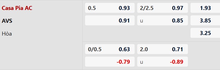 Thông tin tỷ lệ kèo Casa Pia vs AVS: