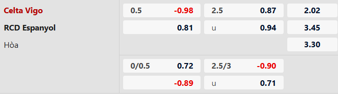Soi kèo châu Á Celta Vigo vs Espanyol: