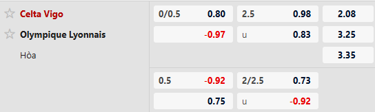 Thông tin tỷ lệ bóng đá Celta Vigo vs Lyon: