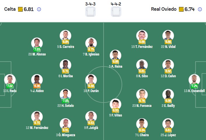 Đội hình dự kiến Celta Vigo vs Oviedo: