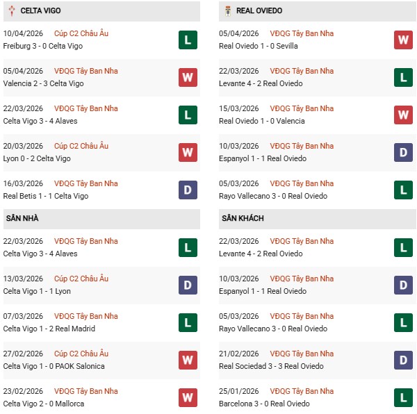 Thực ra xét phong độ gần đây, Oviedo thậm chí còn đang nhỉnh hơn Celta Vigo với 2 chiến thắng sau 4 trận tại giải VĐQG. Tuy nhiên cả hai thắng lợi đều diễn ra tại sân nhà Carlos Tartiere trong khi tính đến thời điểm này của La Liga 2025/26, Oviedo mới một lần duy nhất được hưởng niềm vui trọn vẹn nơi đất khách và thua phần lớn: 10/15.
