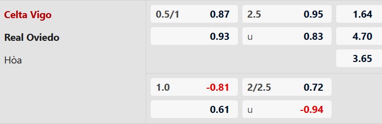 Thông tin tỷ lệ kèo Celta Vigo vs Oviedo: