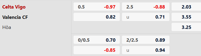 Soi kèo châu Á Celta Vigo vs Valencia: