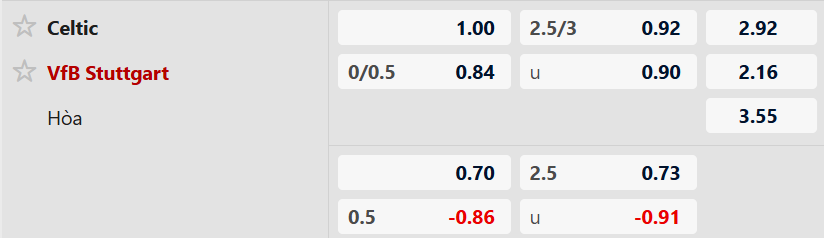 Soi kèo châu á Celtic vs Stuttgart: