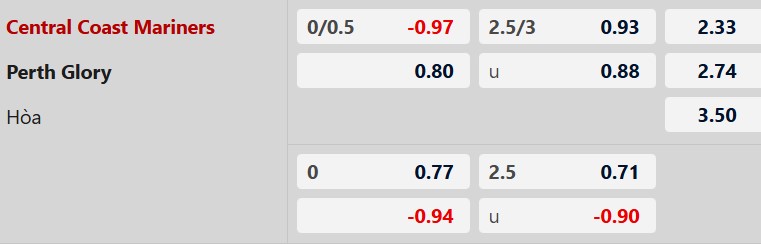 Thông tin tỷ lệ Central Coast vs Perth Glory: