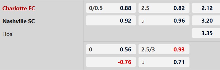 Nhận định kèo châu Á Charlotte vs Nashville: