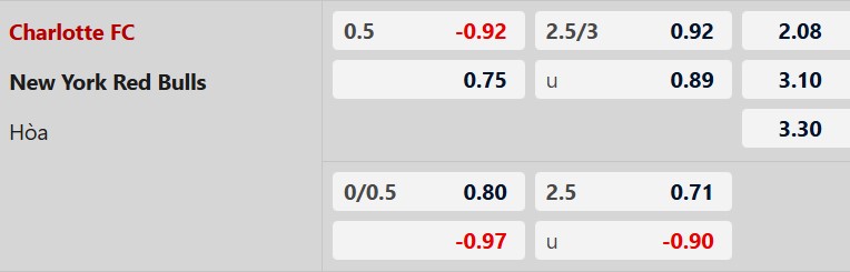 Soi kèo châu Á Charlotte vs New York RB: