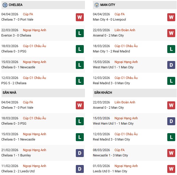- Trên sân nhà, Chelsea thắng 3, thua 5 trước Man City.
