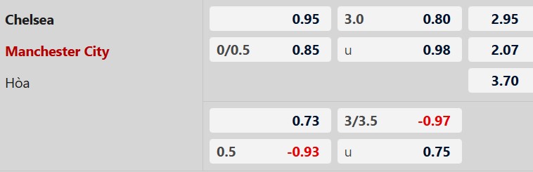 Thông tin tỷ lệ kèo bóng đá Chelsea vs Man City: