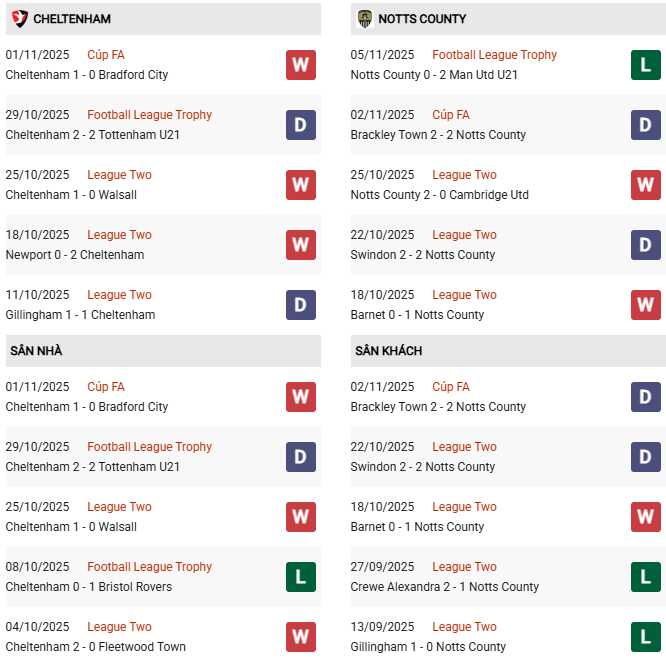 - Cheltenham thắng 3, hòa 2, thua 5 trong 10 trận gặp Notts County gần đây.