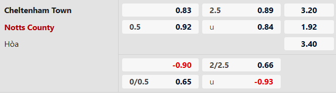 Thông tin tỷ lệ kèo bóng đá Cheltenham vs Notts County: