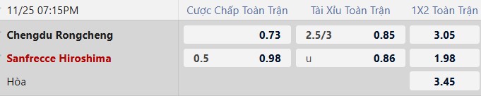 Thông tin tỷ lệ cược Chengdu Rongcheng vs Hiroshima: