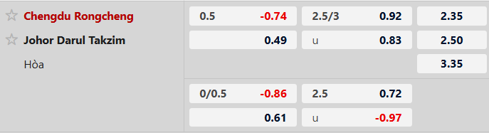 Thông tin tỷ lệ kèo Chengdu Rongcheng vs Johor DT: