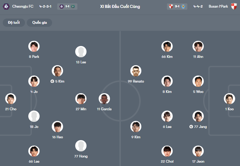 Đội hình dự kiến Cheongju vs Busan I Park: