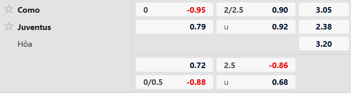 Thông tin tỷ lệ bóng đá Como vs Juventus: