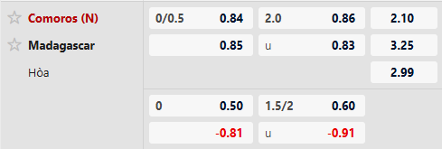 Thông tin tỷ lệ Comoros vs Madagascar: