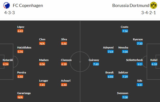 Không đội nào ghi được nhiều bàn hơn Dortmund ở giải đấu này và họ sẽ hướng tới việc nối dài mạch ghi bàn trước một Copenhagen đang gặp khó khăn. Trong 2 lần chạm trán gần nhất, Dortmund thắng 1 và hòa 1. Lần tái đấu này, với phong độ và tinh thần hiện tại, đại diện nước Đức rõ ràng là đội nắm ưu thế lớn hơn.