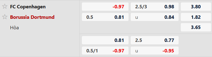 Thông tin tỷ lệ bóng đá Copenhagen vs Dortmund: