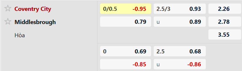 Soi kèo châu á Coventry vs Middlesbrough: