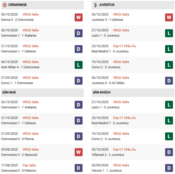 - Cremonese thua cả 2 trận đối đầu Juventus gần đây.