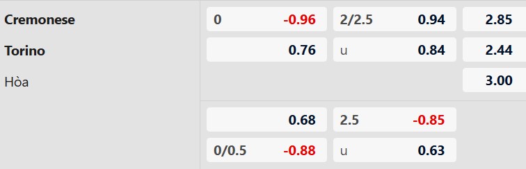 Thông tin tỷ lệ kèo Cremonese vs Torino: