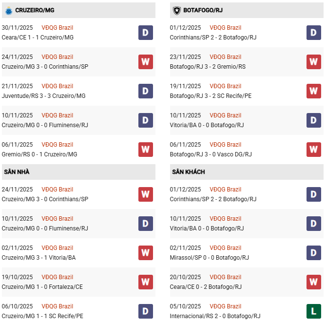 NHẬN ĐỊNH CRUZEIRO VS BOTAFOGO, 05H30 NGÀY 05/12: VĐQG BRAZIL
