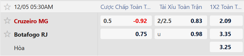 Soi kèo châu á Cruzeiro vs Botafogo: